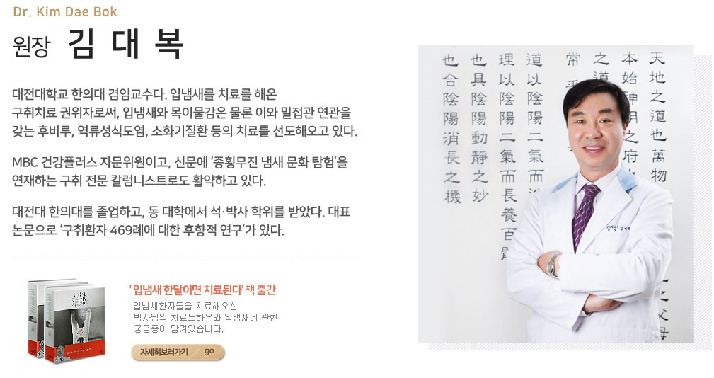 입냄새,후비루,목이물감,역류성식도염,비염,축농증,치질,소화기질환 등의 치료를 위해 혜은당클린한의원은 정성을 다합니다.
