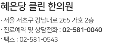 입냄새,후비루,목이물감,역류성식도염,비염,축농증,치질,소화기질환 등의 치료를 위해 혜은당클린한의원은 정성을 다합니다.