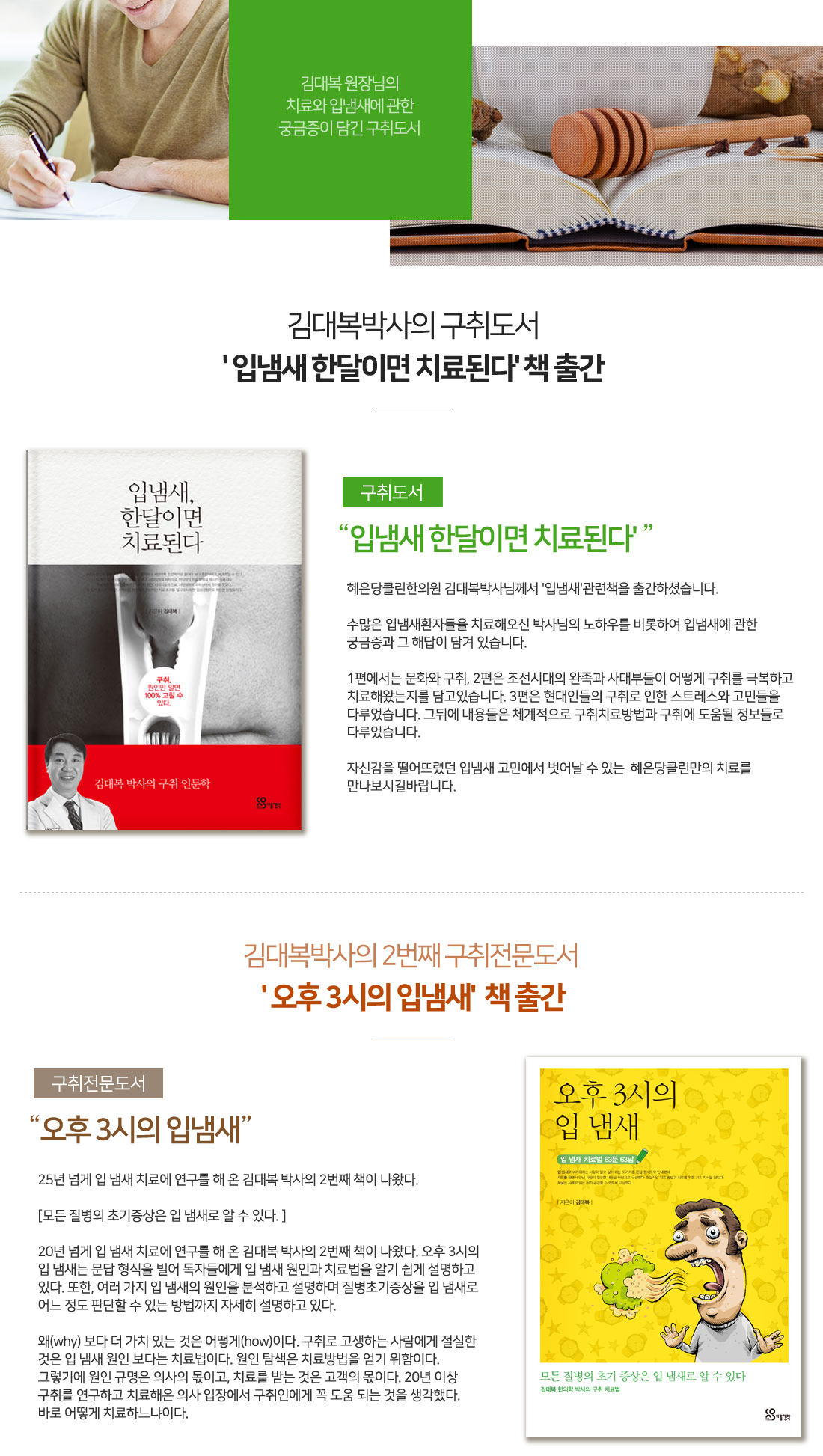입냄새,후비루,목이물감,역류성식도염,비염,축농증,치질,소화기질환 등의 치료를 위해 혜은당클린한의원은 정성을 다합니다.